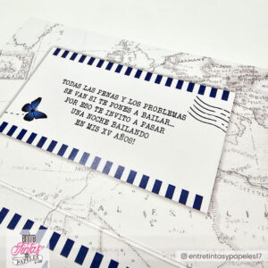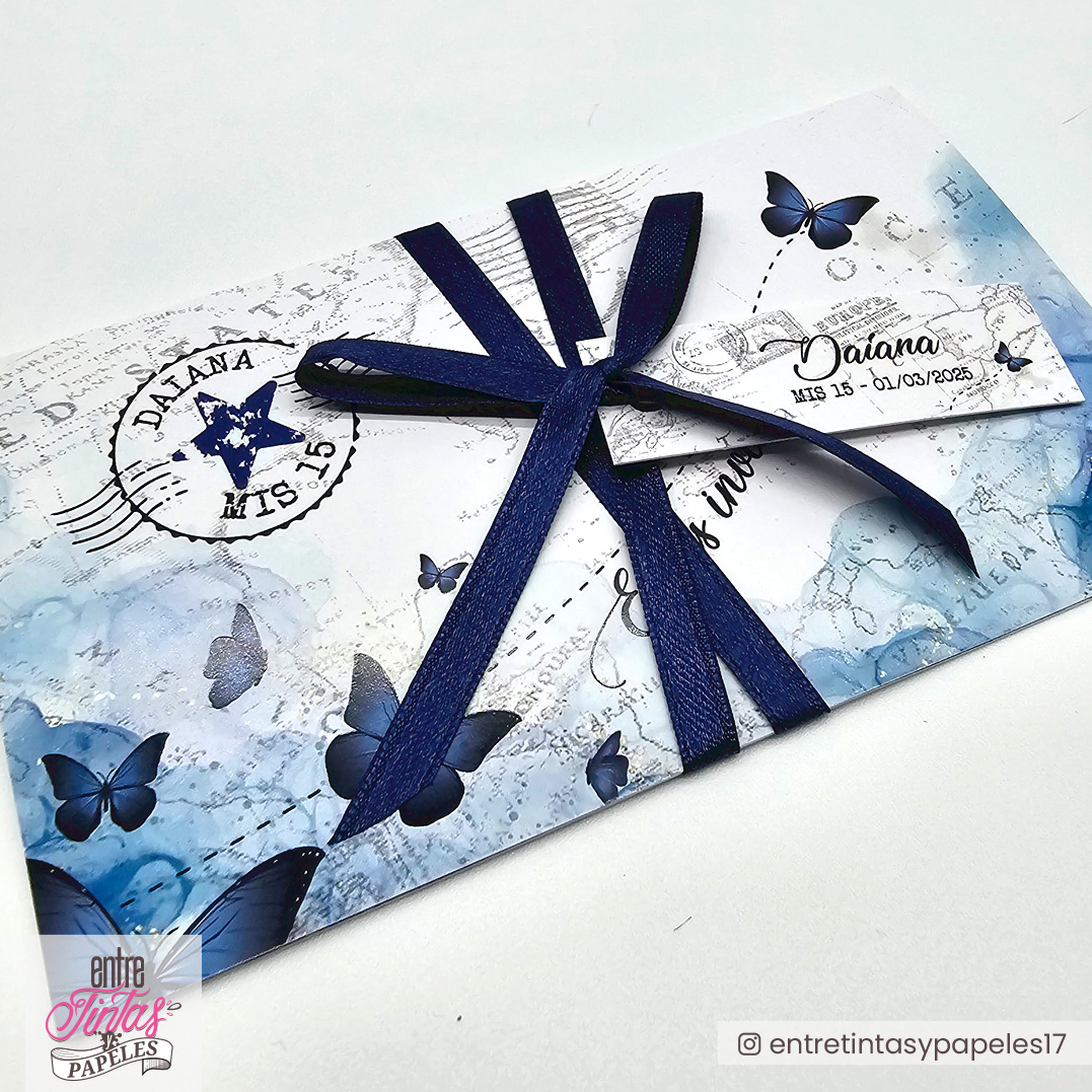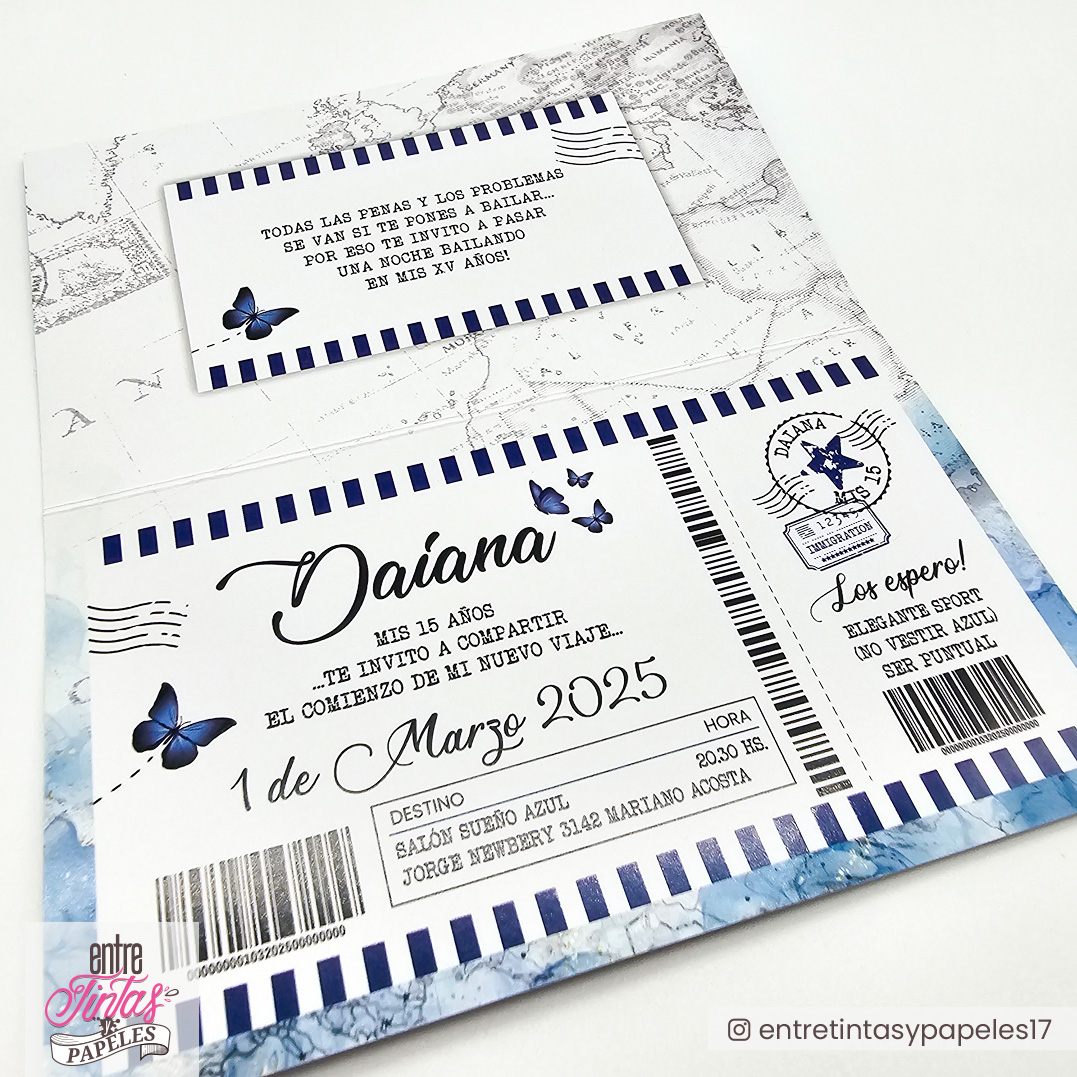 Invitaciones 15 Años Boleto de Viaje Mariposas Azules